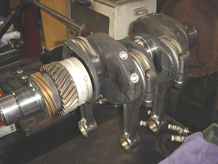 クランクシャフトをコンプリートに組み上げ、本組みの準備です。