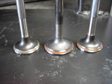 シートカットが完了したバルブシートとバルブをすり合わせ作業後に光明丹で当りをチェックしました。