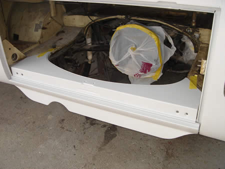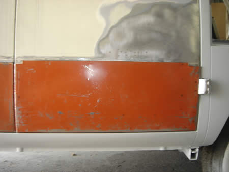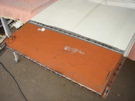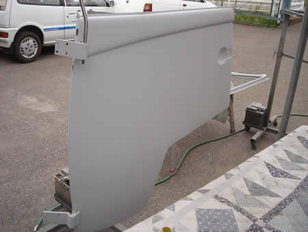 サイドカーゴドアのアウターパネルの張替えを進めています。