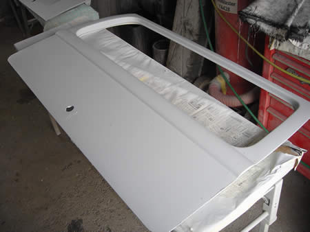リアハッチは下側にサビが・・・剥離後に溶接にて修正して面修正中です。