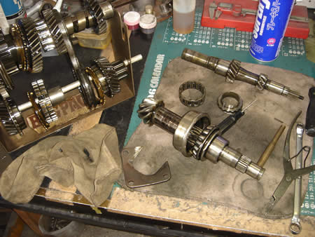 ミッションケース、各シャフト&ギアを洗浄、部品一つ一つを点検します。