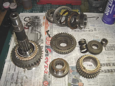 メインシャフト側は3速のシンクロリングが摩耗限度を超えていたため交換します。