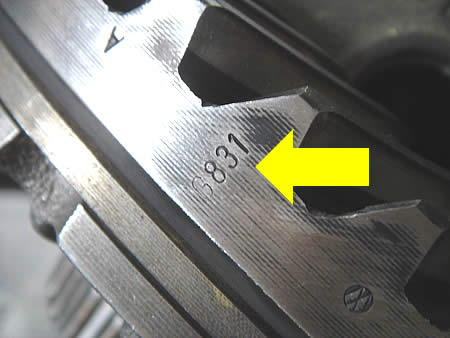 写真右、デフのリングギアに打刻されている「G831」の意味は、G→GLEASON(メーカー名)、8→ピニオンギアの歯数、31→リングギアの歯数です。