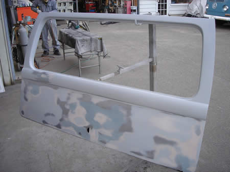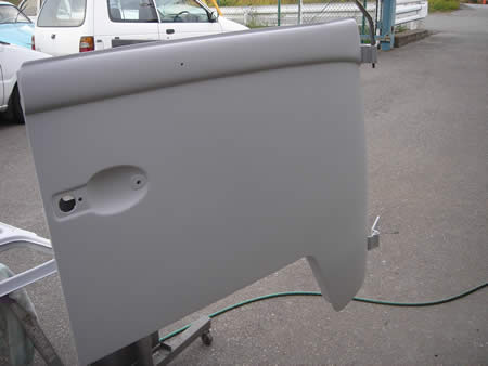 面修正が終わりサフェーサーが入った左右フロントドアです。