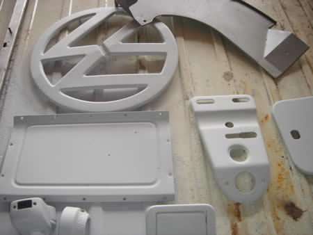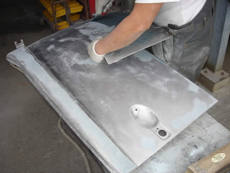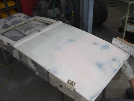 大きな板金はありませんでしたので、表面の傷取りをピンクパテで行いサフェーサーが入りました。