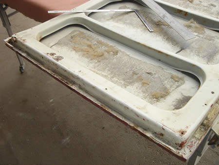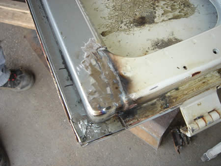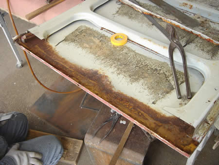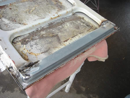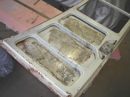 アウターパネルを切開してみると・・・左右共にサビがビッシリですね・・・。