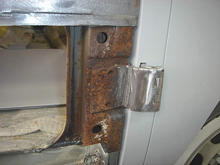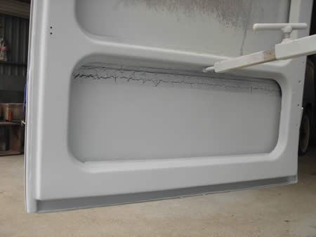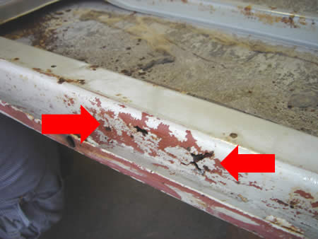 もう一枚のカーゴドアも同じくサビ穴が・・・。