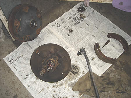 デフキャリヤも分解して取り出したアクスルシャフト、チューブ、ブレーキのバックプレート等を高圧洗浄機でキレイにします。