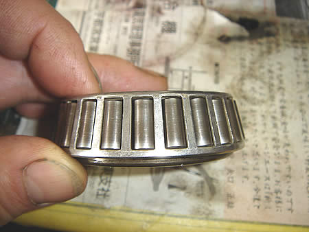 いざ分解してみるとやはりそこにはガタがありました・・・。ナニやら硬〜いグリスでごまかしてあったのですが、洗浄してみると要交換でした。