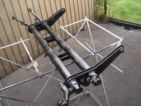 写真右はフロントの足廻りの部品、スピンドルのアップです。