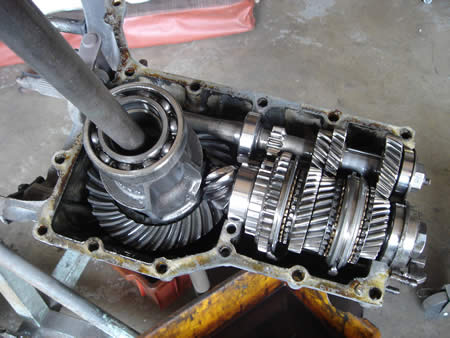 ただ・・・この“縦割れミッション”の面倒なところは、ミッションを分解しなければシャフトが抜けないことです・・・。