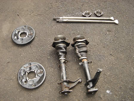 アクスルシャフト&チューブ、ブレーキ廻りの部品は再使用するために分解いたします。