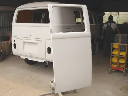 切開した両カーゴドアを車体に仮付け、ボディーとのチリを確認します。
