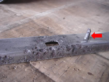 そしてこの部分にもドリルで開けられた穴が数箇所あり、同じく溶接で穴埋めして面修正中です。