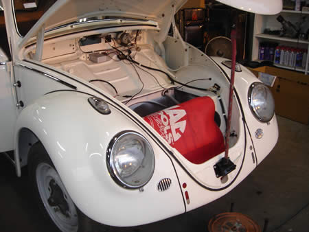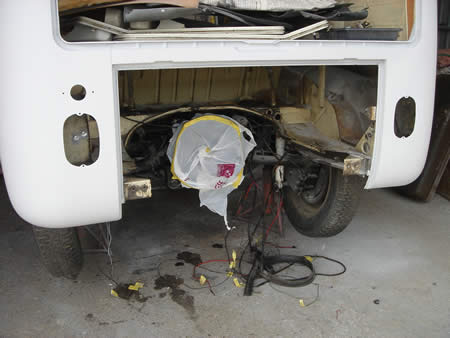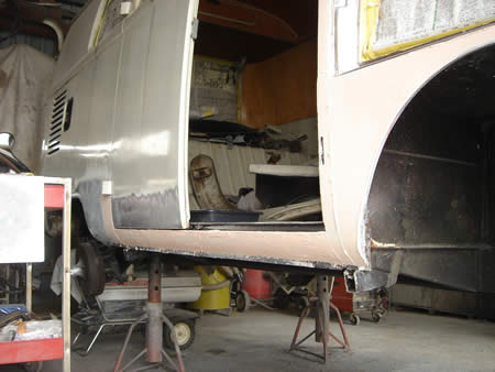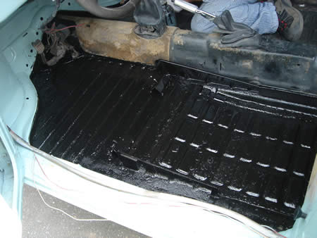 POR−15でフロアー全体を防錆処理して内装屋さんへ旅立つ’69カルマン。
