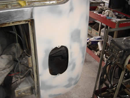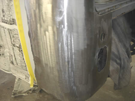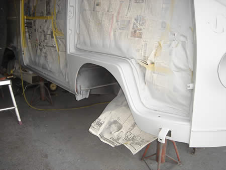 今日から右クォーターパネルの下処理に入ります。