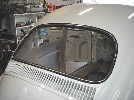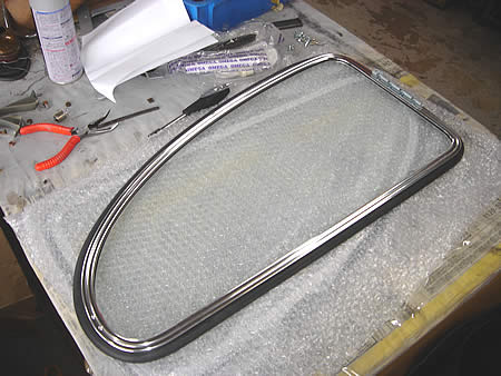 リアウィンドラバーを組み付けたところで作業を変更しました。