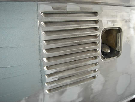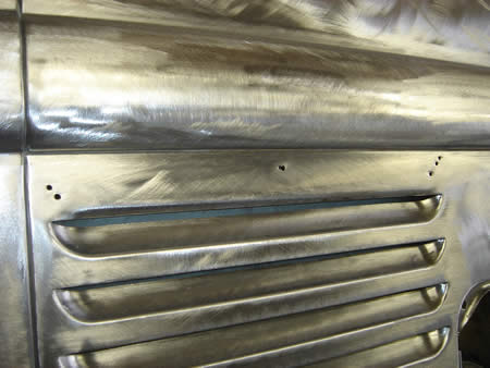 サイドスリットまわりに開いていた穴を全て溶接で埋め、面修正をしています。