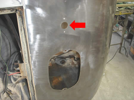 テールまわりを剥離すると、またまた余分な穴が開いていました・・・しかもパテで埋めてあっただけ。