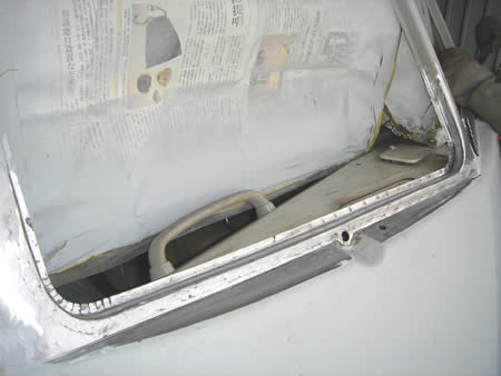 ウィンド廻りのフレームに腐食があったことは以前にお伝えしましたが、ここも切開が必要です。