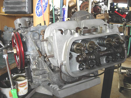 ロングブロックへと組み付け中のエンジン!