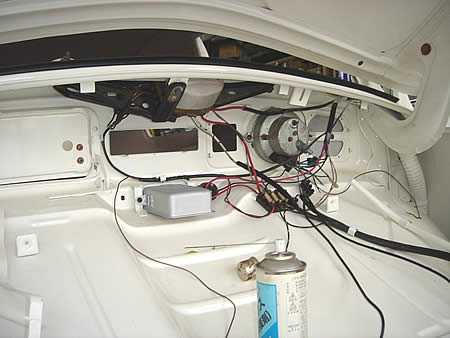 フロントフード内は配線の組付けです。