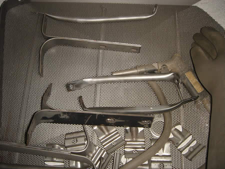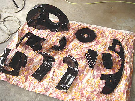 室内の小物パーツもブラスト処理を行いペイントの準備をしました。