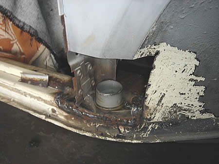 溶接箇所の整形後に防錆処理を行いピラーを溶接していきます。