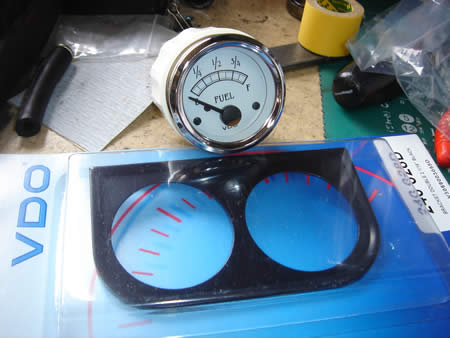 フューエルゲージは吊り下げになりますが、ブラケットが2ホールになります。このままにするか、もう1つゲージを追加するかご検討下さい。