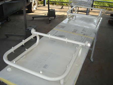 写真右は張替えが完了したサイドメンバー!