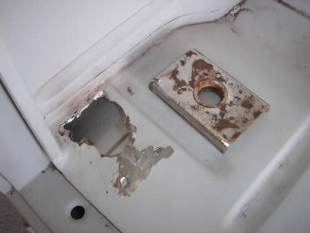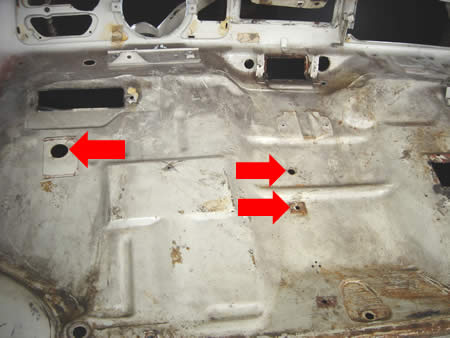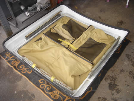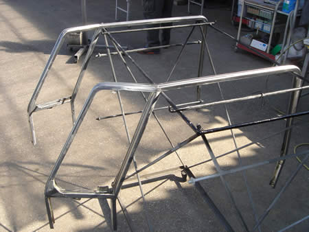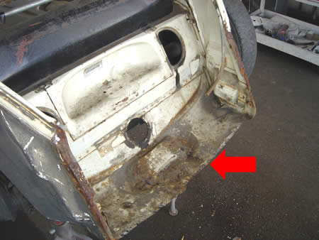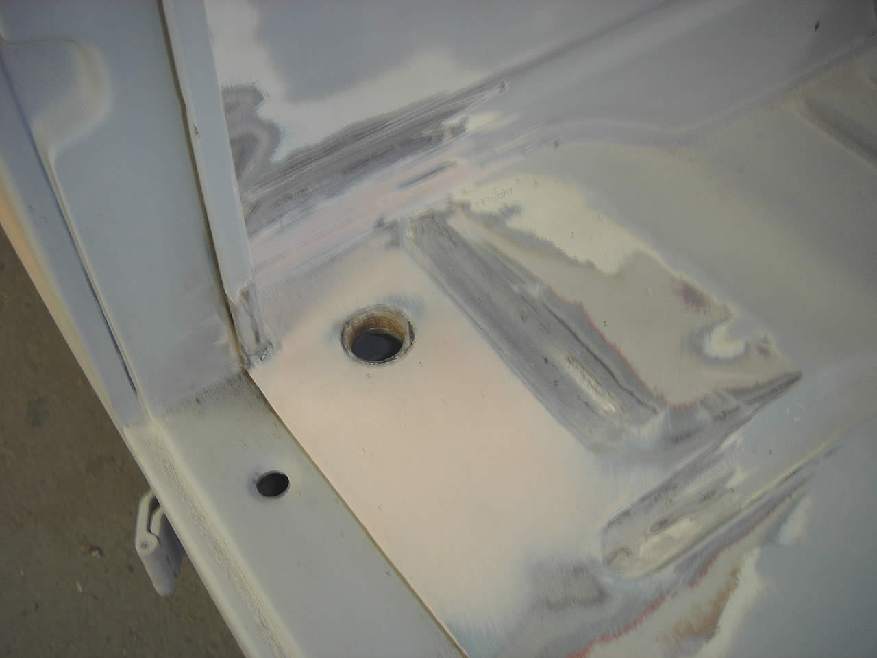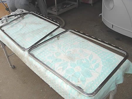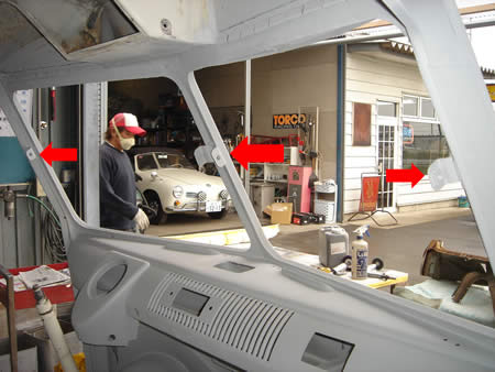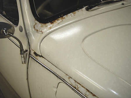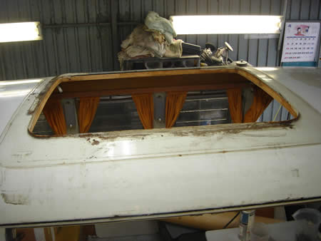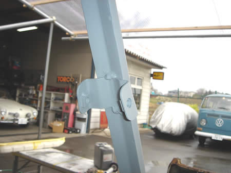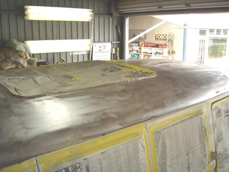 ルーフの水きりチャンネルにはサビが発生していて、オーナーさまが簡易的にPOR−15を塗って防錆処理を行ってありました。