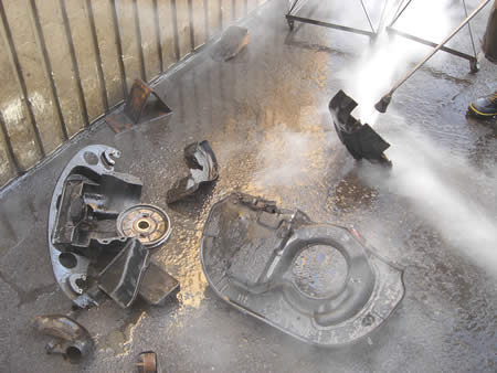 先ずは油分をきれいに落とした後に「サンドブラスター」にて古いペイントを剥がします。