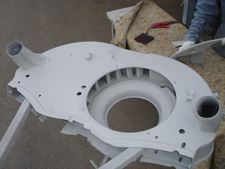 サンドブラスターで古い塗料を剥がし、サフェーサーを入れてペイントします。