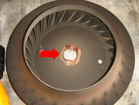 裏側の36mmのナットが緩かったようで、ファンが回転方向に動いていた形跡がありました。(写真→部)