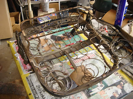 “骨折”していたスプリングはパーツ取りのシートからスプリングを移植&補強して使用します。