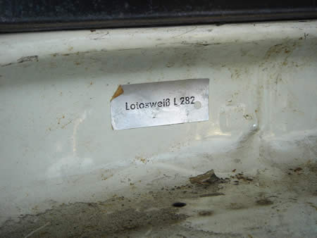 スペアータイヤの裏側に残っていた「ロータスホワイトL282」ボディーカラーのステッカー! オリジナルカラーにてペイントするので、出切れば生かしたいですよね!!