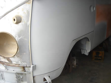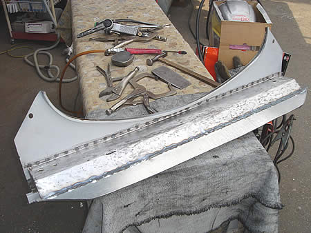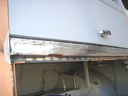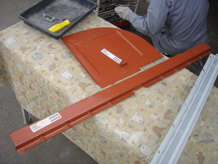 裏側にサフェーサーを入れ、溶接部にはウェルドコートを塗り錆の再発を防止します。