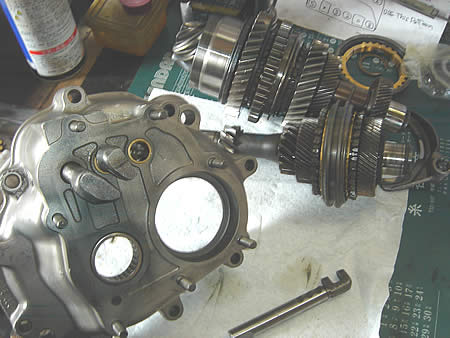 フォーク調整が完了したギアキャリアをミッションケース本体に組み込みました!