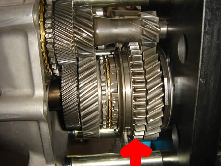 各ギアは常時かみ合っていて、シフトされた時に動くのは写真のスライダーリングなわけですね。