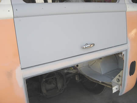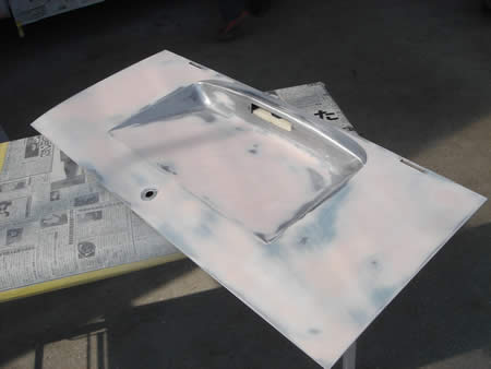 サフェーサーが入ったリアエプロン&エンジンハッチの裏側です。
