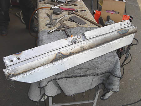 写真右が、スポット溶接にて取り付けられたフロントエプロン!