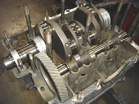 ダイナミックバランスを取ったクランクシャフト&オリジナルのカムシャフトをケースに仮組みします。
