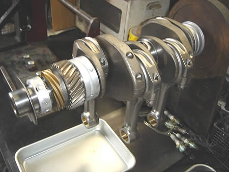 クランクシャフトにコンロッド、カムギア当を組み付け本組みの準備です!