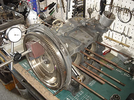 ケースの各ジャーナルを掃除してメタルを組み、内測します。オイルクリアランスの確認ですね!