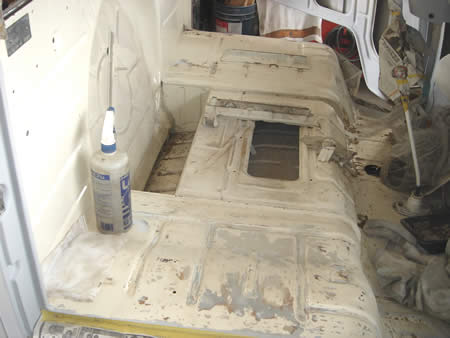 同じくバッテリーフロアーパンにもサビ穴が有りますので張替えします。
