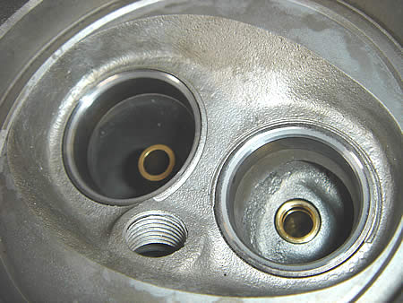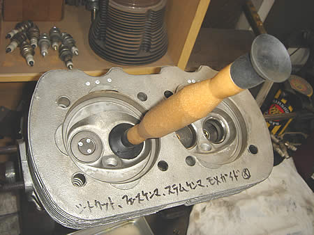 写真中央&右は、シートカットされたバルブシートとバルブとの座りを整えるための“すり合わせ”という作業です。
