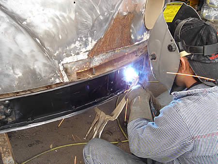 もう一度フロントフェースを仮付けしてAピラー下側のサポートパネルをAピラーに溶接!