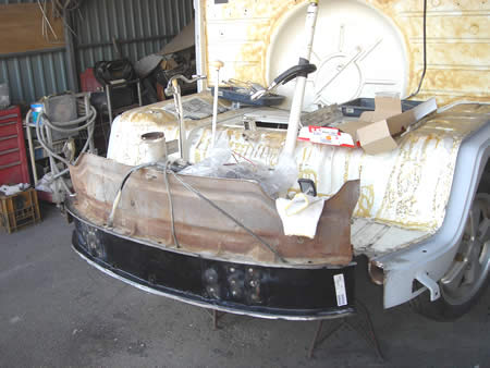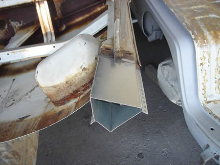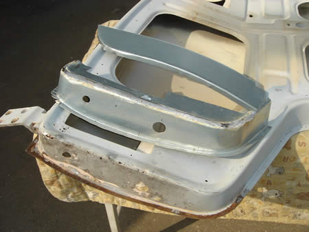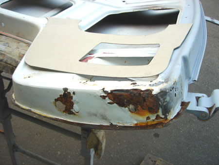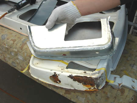 腐食の進んでいるリアハッチの下側・・・先ずはアウターパネルを防錆鋼板で造りました。