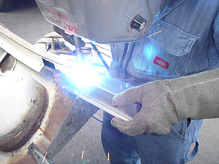 ドアチリを確認しながら、あっちを引きこっちを押しながら位置出しをして、記念すべき一発目の溶接!