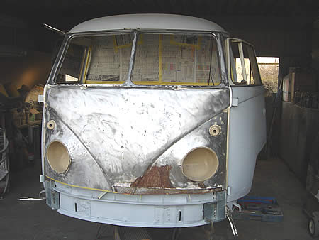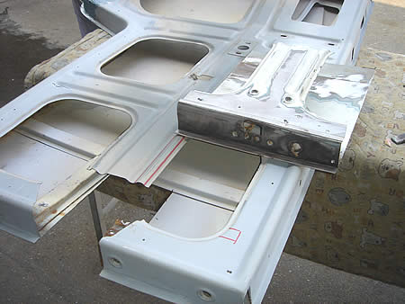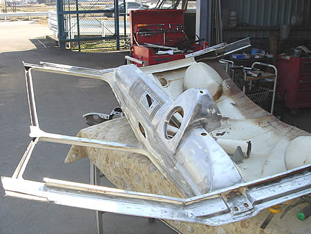 ドナーから外したフロントフェース、左右のピラー下側に傷みが多い為、新たに造り変える事にしました。